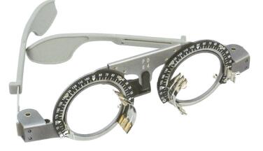 試鏡架是驗光配鏡的基本工具之一,每次插片驗光都必須用到它。它具有一個眼鏡架式的框架,在框架兩個圓圈的正面各配設兩個試鏡坐腳。試鏡架是在綜合驗光儀進行主覺驗光之后使用的,雖然綜合驗光儀得到的結果已經較準確,但還必須再用試鏡架技術進行適當的調整,因為試鏡架比綜合驗光儀更接近于實際佩戴情形。